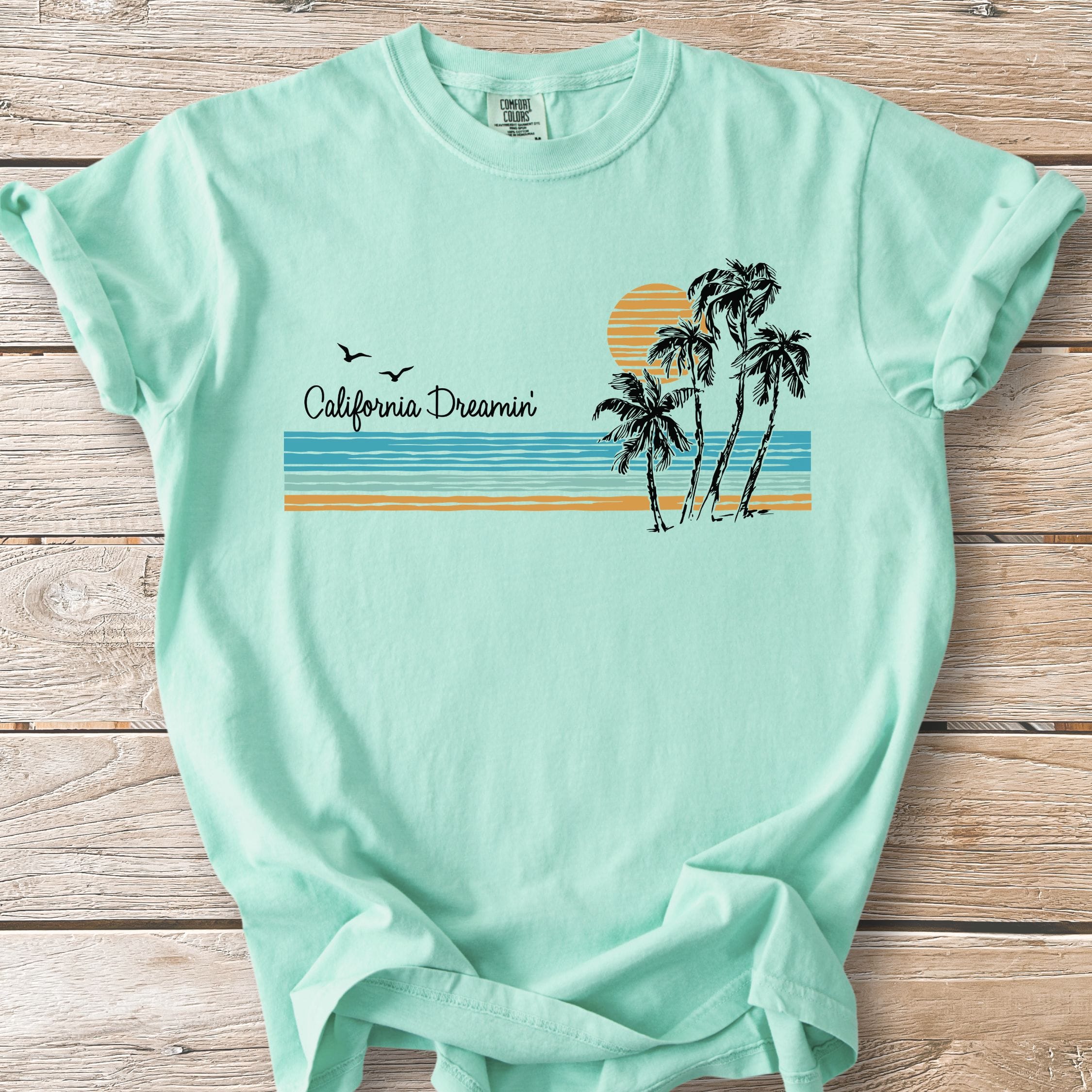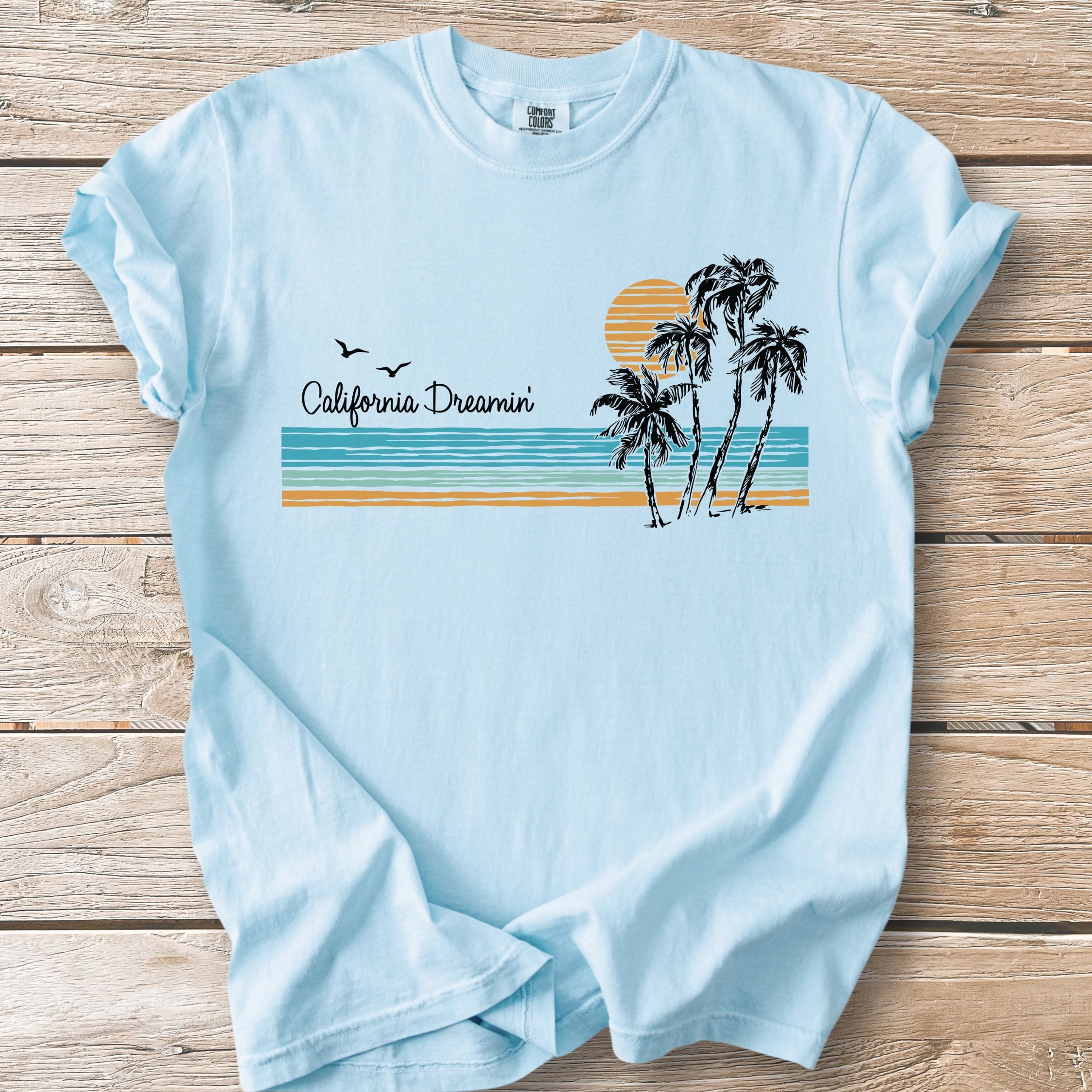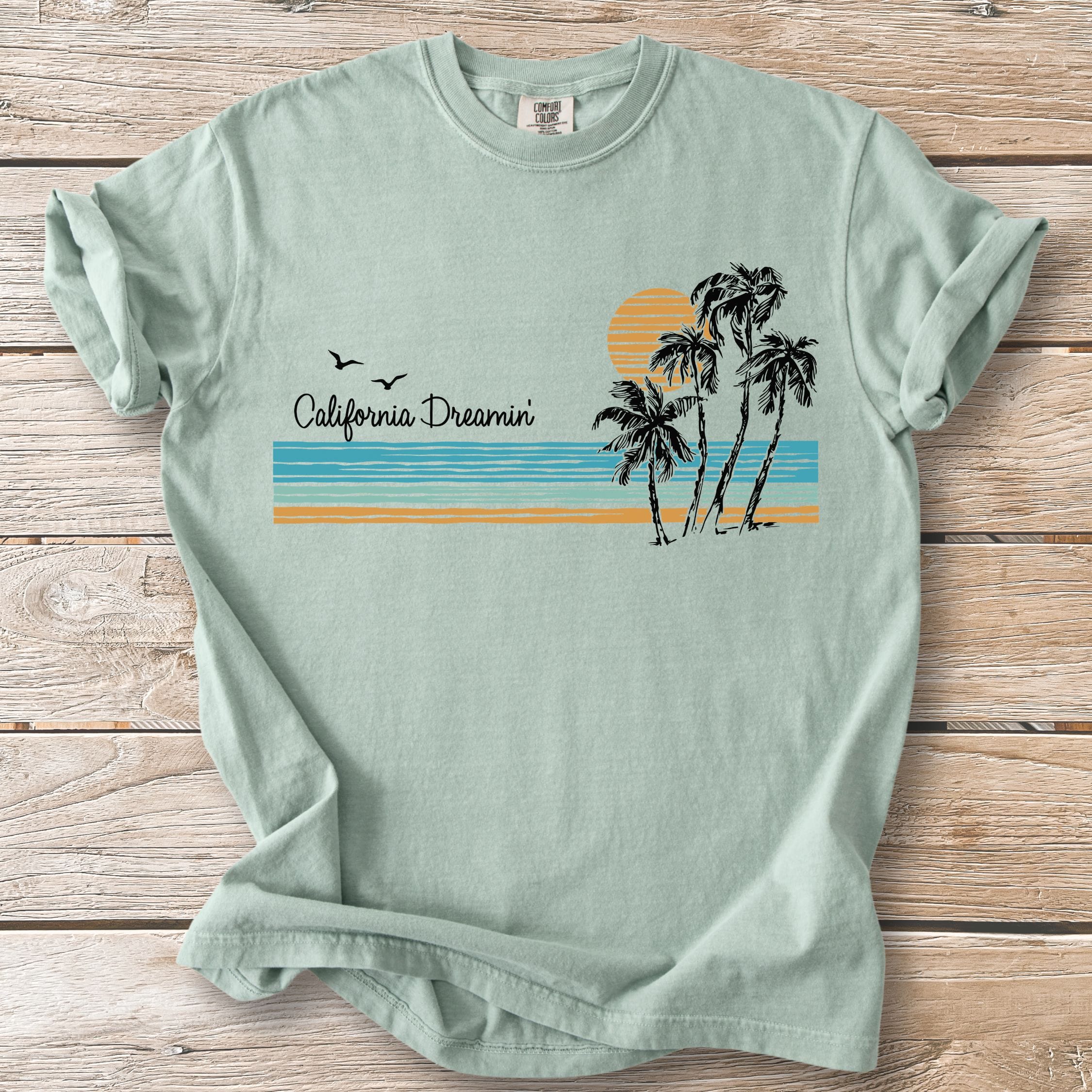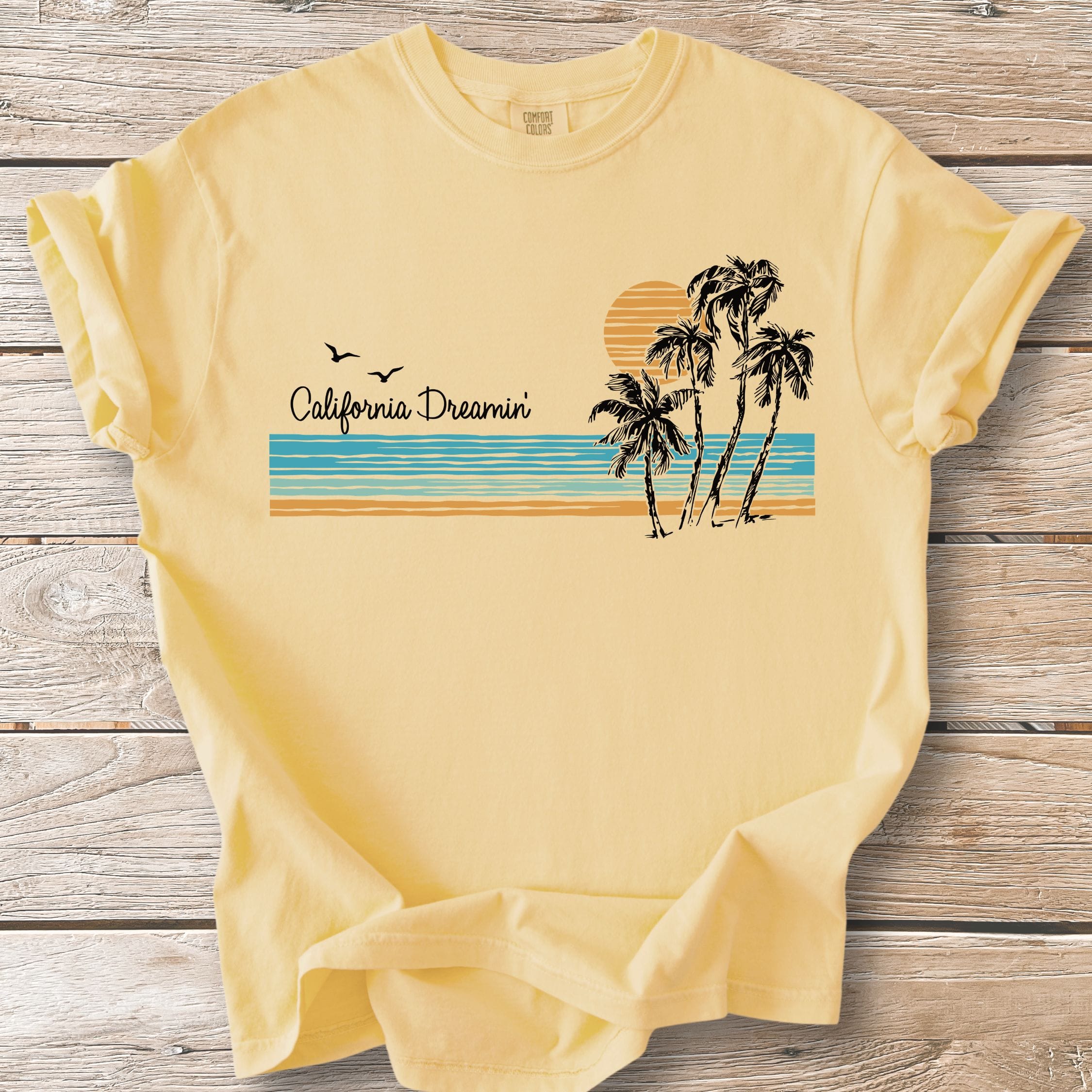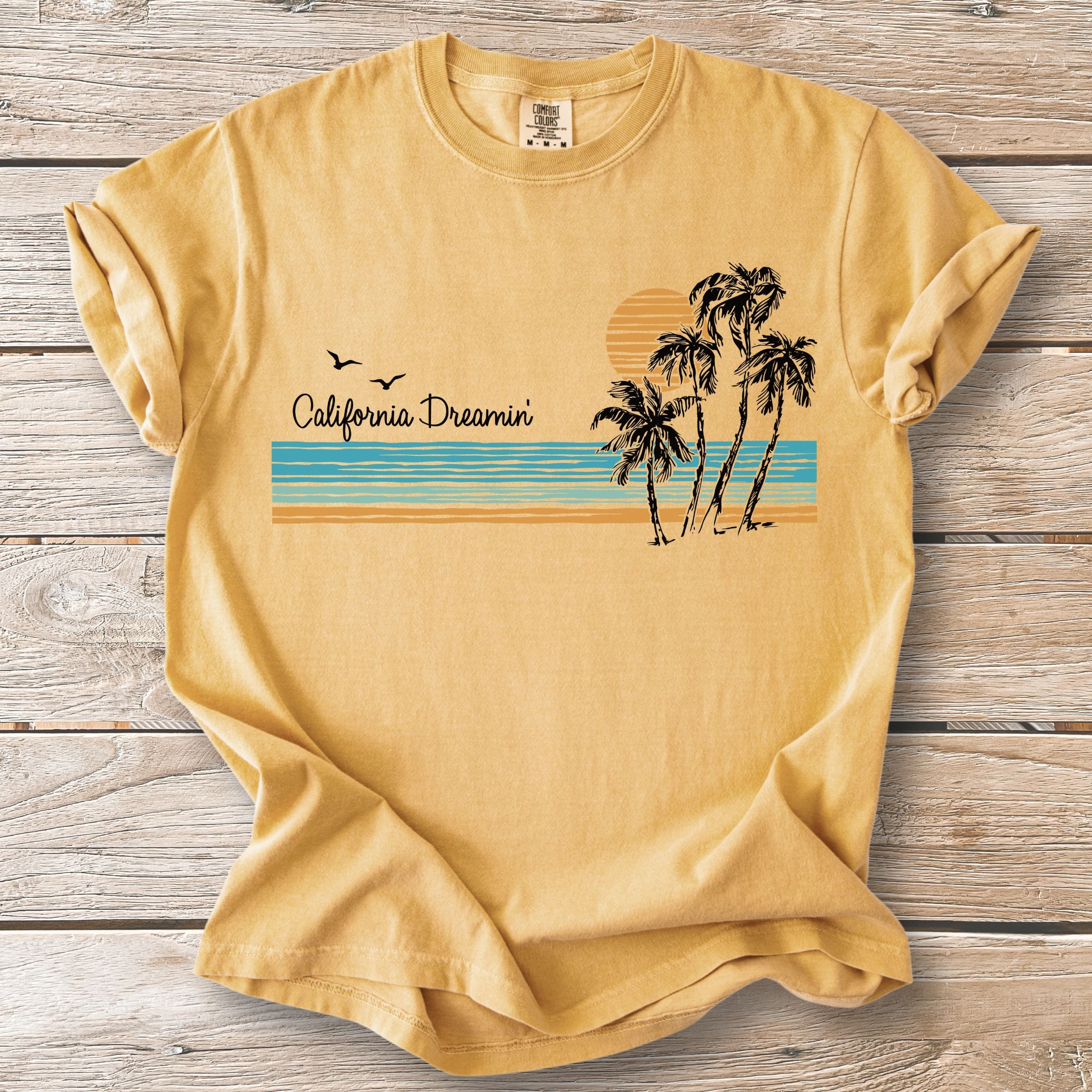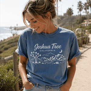 We print all our designs on the Comfort Colors® 1717 because nothing else feels quite like it. Heavyweight ring-spun cotton. Garment-dyed for a sun-faded, lived-in softness from day one. Relaxed fit that doesn't try too hard—just like California.